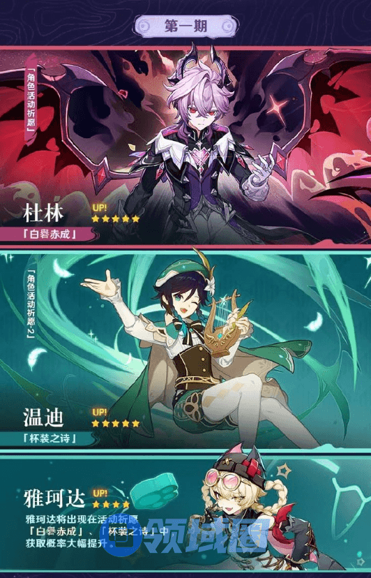 原神已经开启了月之三版本前瞻直播,本次前瞻直播放出了月之三卡池,那么大家知道原神月之三卡池是谁,都有哪些角色吗?相信大家都想了解吧,下面快跟随领域圈小编一起来看看吧。
