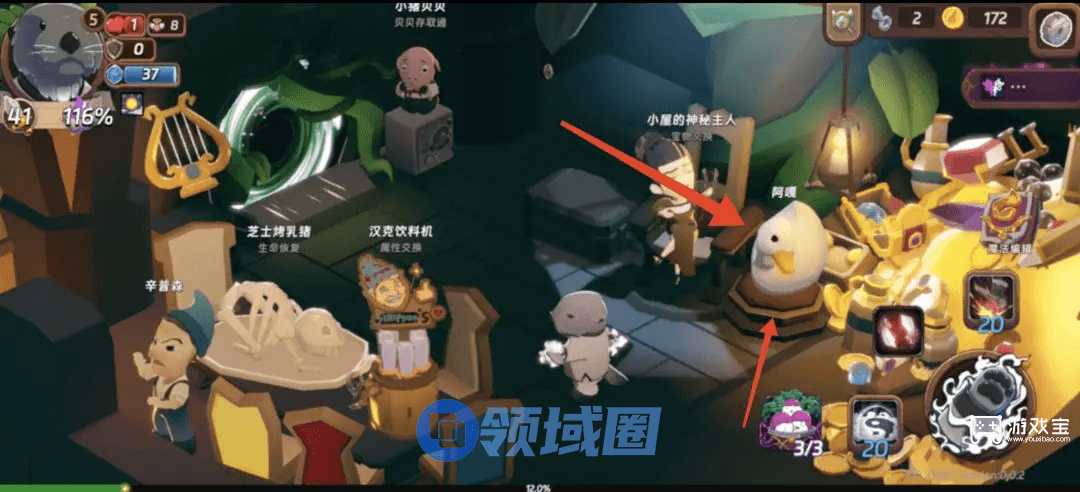 2、奇怪的蛋:打完第1个boss关后的中间休息层,右下角的白鸭子和他交互。