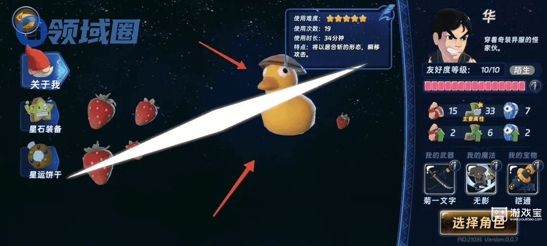 4、兽皮鸭子:魔镜选角色的界面点华出场动画的这个鸭子。