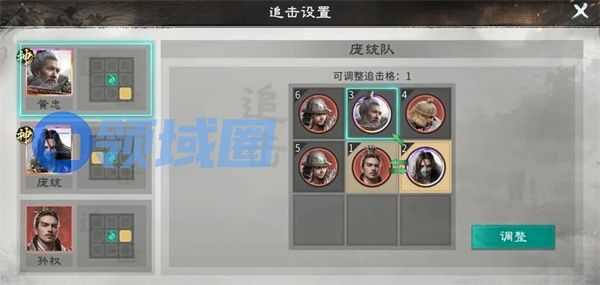 英雄站位为:黄忠无需踩追击格,庞统踩孙权以及黄忠的追击格,可以二次释放追击技能,孙权站庞统的追击格。