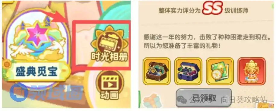 领取途径在园游会右下角的时光相册,下拉到第8页即可