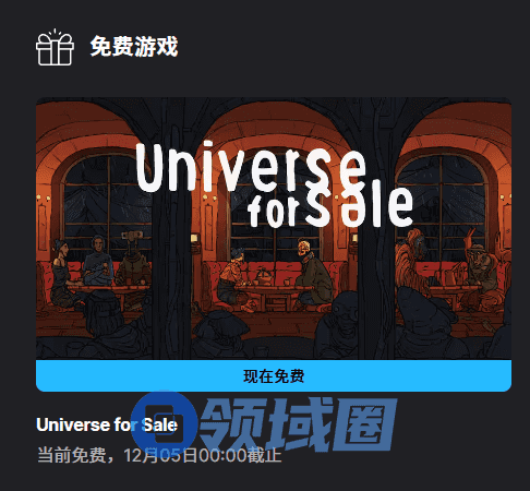 Epic游戏商城现已开放领取手绘风冒险游戏《宇宙待售》,12月5日0点截止。