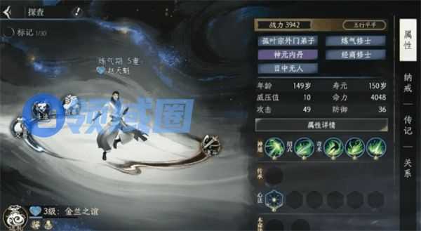 探查:通过探查,能全方位掌握 NPC 信息,包括境界属性、纳戒物品、喜好、过往经历及人际关系,无论交好还是对阵,都能知己知彼提前准备。