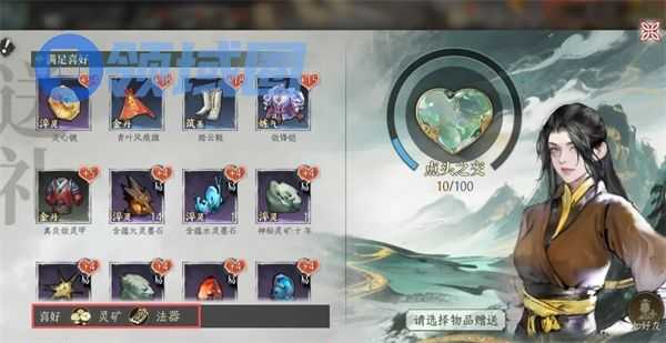 礼物品阶定效果:礼物品阶和价值直接决定好感涨幅,通常灵丹、功法、装备等成品灵物>灵植、灵液、妖丹等基础材料,同类别中品质越高效果越好(如金丹级材料>筑基级材料),贵重礼物更易打动 NPC。