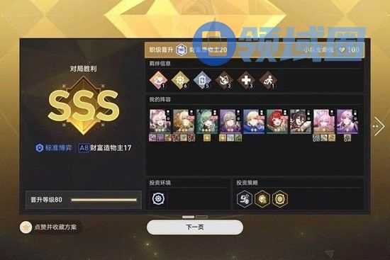 2.2投资策略首先优先彩,其次不管经济还是经验,优先选立刻能拿到手的,不要那种“长线”的。短线求稳,长线赌“运”,一把30分钟还是别赌了,满命随便哈。优先选投资策略“对比自己星级低的加伤”
