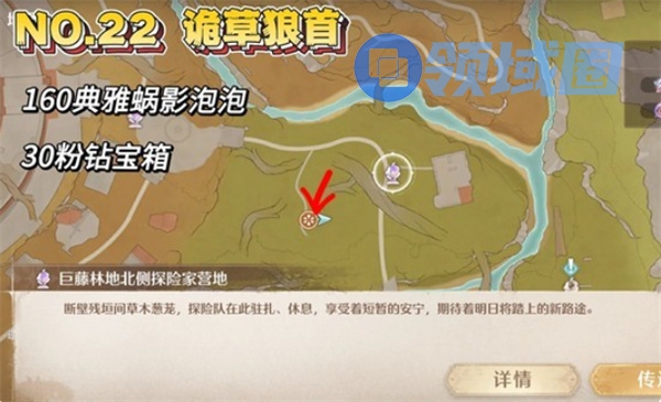位置:传送锚点 → 巨腾林地北侧探险家营地 → 左下方标点