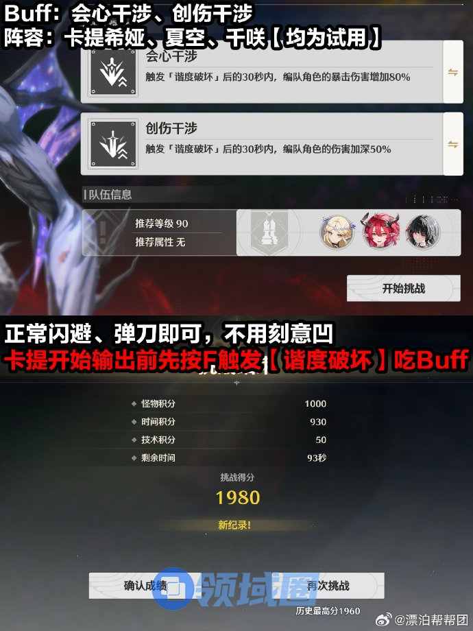 注意点:卡提开始输出前先按F触发【谐度破坏】吃buff