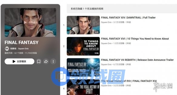 TGA颁奖典礼即将举行,《最终幻想》玩家社区通过官方播放列表的更新,推测SE可能在典礼期间公布重磅消息。播放列表新增了一个未公开视频,而该列表一贯只收录系列主要预告片,不包括移植作品,因此玩家排除了任天堂Switch2相关公告的可能性。