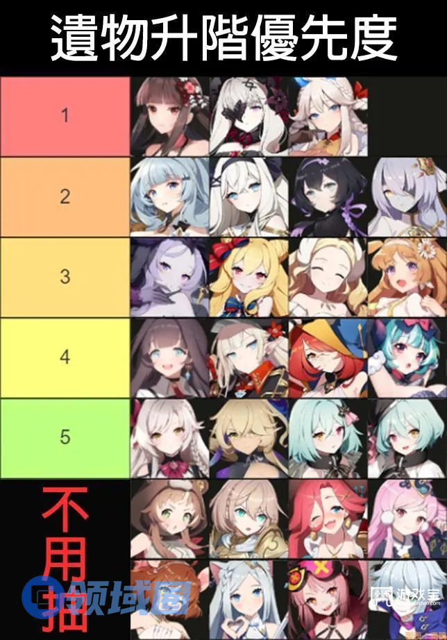 7、那么,我们就要回答最后一个问题,抽谁的遗物呢?对于新手,无课及微课玩家来说,我推荐的抽取顺序如下: