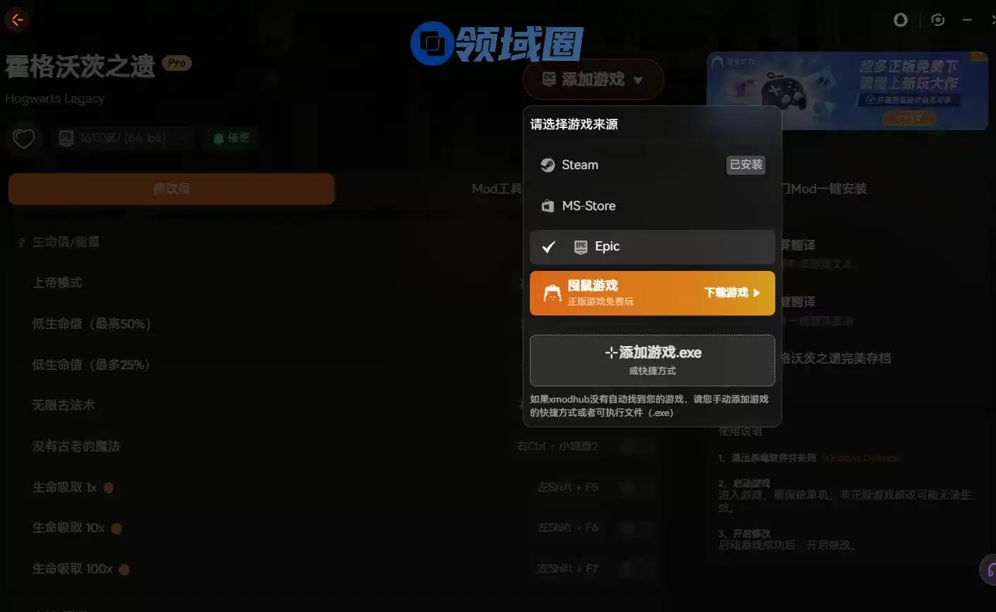 进入xmod的专题游戏界面,记得在启动游戏的来源里选择EPIC渠道,页面就会自动切换为EPIC端口