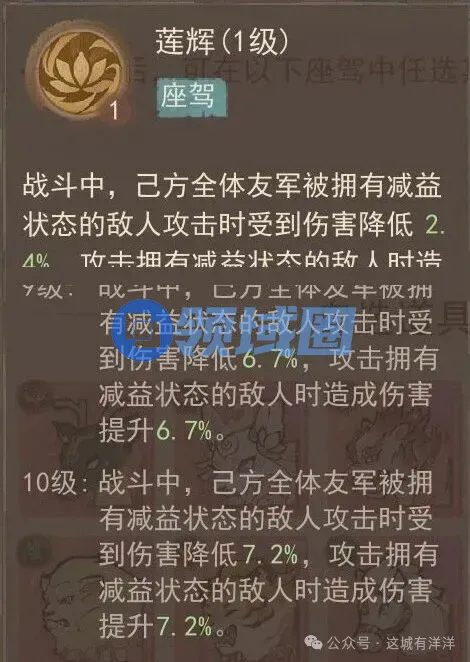 技能是和减益状态高度相关,敌方有减益状态的英雄实现7.2%的造成伤害降低和受到伤害提升。
