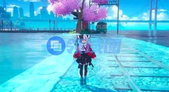 列车流畅的车身行驶在波光粼粼的水面上,沿途樱花飘落,构成了一幅浪漫的移动画卷,这里也成为了许多玩家在异环世界中的拍照打卡圣地。