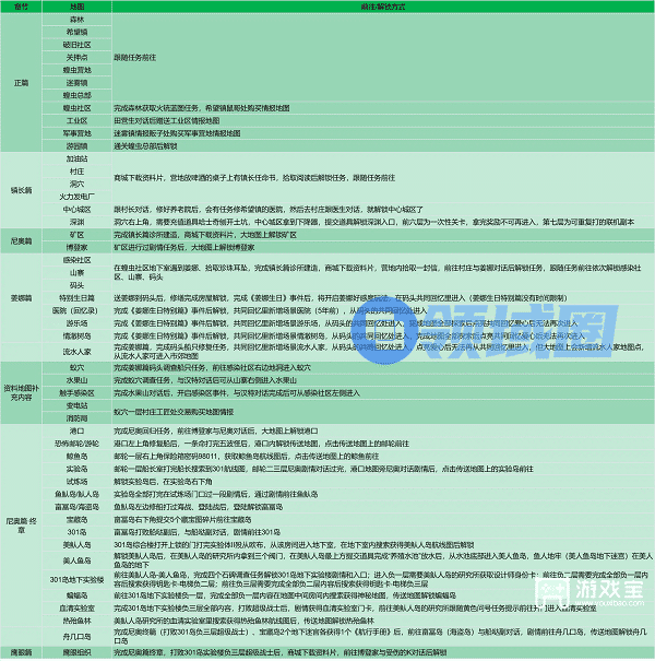 关键点:地形以高楼为主,需利用掩体躲避感染怪物,一层万年龟王建议最后挑战。