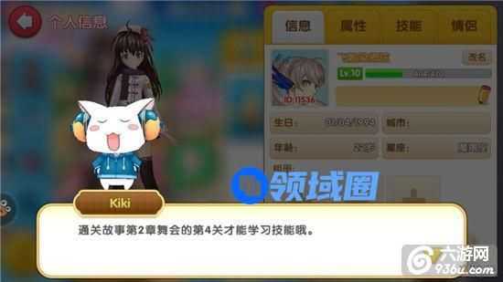 与点击人物头像功能相同,可以进入人物信息,查看自己的信息,属性,技能和情侣。