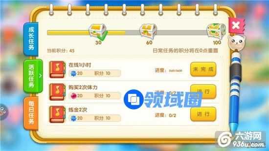 任务中可以查看成长任务、活跃任务、每日任务