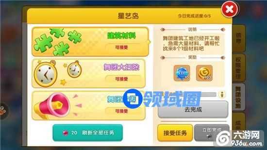 进入舞团后,可以在舞团设施中进行舞团独有任务,完成有金币和经验等奖励