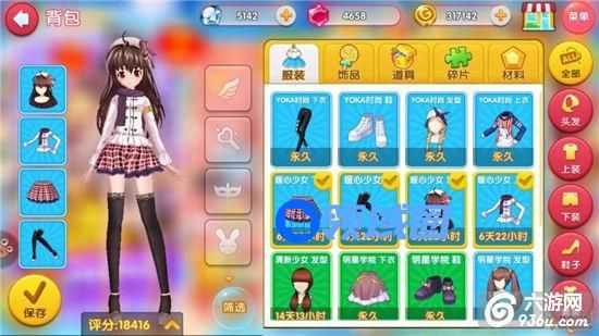 在背包中可以自由更换你的服装,饰品。并且会显示你目前的服装评分