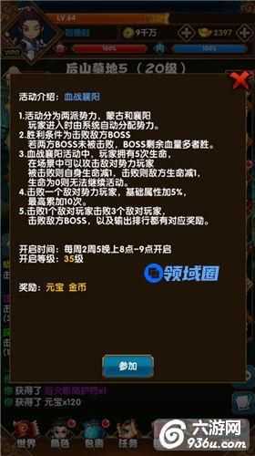 各位大侠,每周二周五20:00,记得去参加血战襄阳哦!