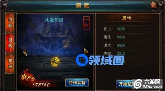 1:特殊装备界面可装备灵魂装备,分别是天枢、天玄、天玑、天权。