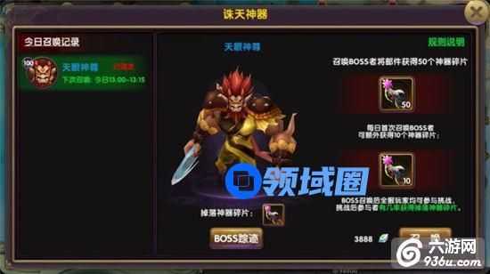 4、每天首次召唤BOOSS的玩家还可额外获得碎片;