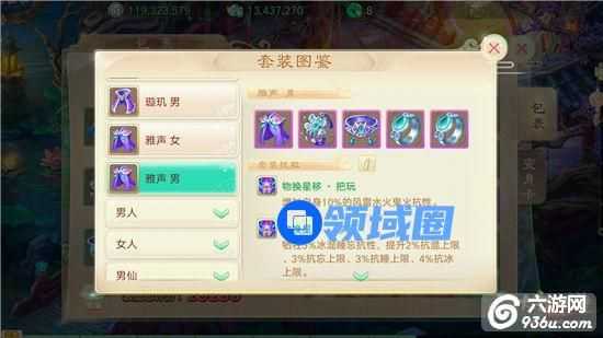 雅声套的作用就是为增强抗性和提升抗性上限的,它的作用也不仅仅只是对男鬼来说的,除了人族之外,其他职业的原始上限抗性相对来说比较弱,都只有100,而对于大众玩家来说帮派修炼肯定不会特别高,目前逍遥的帮派修炼都还没到65,所以这个时候每一点抗性或者每一点抗性上限都是弥足珍贵的,尤其是对血单位来说更是如此,如今一些高中端副本的怪物的控制还是非常逆天的,反正逍遥的男鬼在抗130+带盘的情况下也是被控的不要不要的,所以雅声珍藏套也是一个不错的选择。但是同样的雅声也是移山套,获得难度上会高一点。