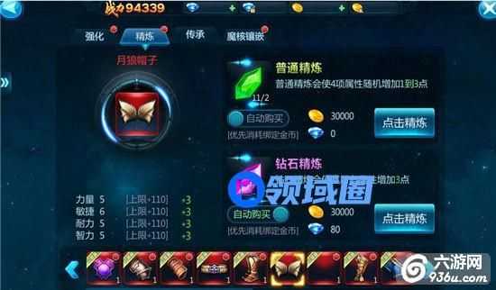 精炼是给装备加属性,分为普通精炼,钻石精炼