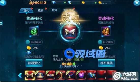 装备强化分为普通强化、灵魂强化,灵魂强化是必定成功的,我的强化装备的方法就是先将装备普通强化到8级左右,然后使用灵魂强化。