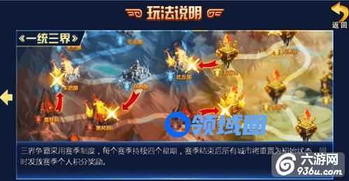 三界争霸战,争夺的不是一城一池,每个阵营在赛季开始时都会分配到数个城市。城市分成首都和城镇,每个阵营只有一个首都(不可占领),一旦首都被攻陷,该阵营下的城市部分财产将归攻陷方所有。城镇是阵营间发生争夺最频繁的目标,在城市争夺期内可以任意进攻和占领与己方首都有相连的其他阵营城镇。每周三、六的21:00—21:30是城市争夺期,只有在这段时间才能攻陷占领城镇。