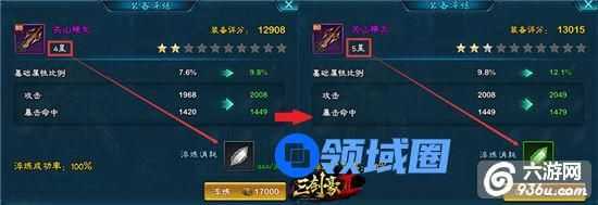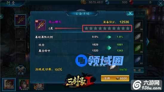 淬炼可以按“百分比”提升装备主属性的能力值。装备的基础属性越高,淬炼获得的加成也越大。