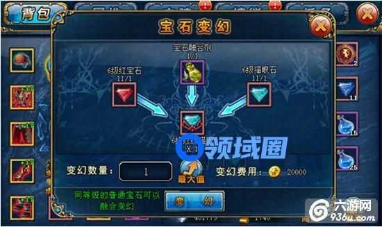 当宝石的等级达到6级或以上,打开宝石后,点击变幻按钮可打开融合宝石的界面。低于6级的宝石,没有变幻按钮,不可进行融合。