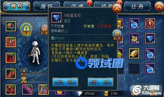 提升装备附加属性,为装备打孔镶嵌各类不同的宝石,红宝石加强物攻、蓝宝石加强魔攻、猫眼石加强物爆、尖晶石加强魔爆、翡翠加强物防、玛瑙加强魔防、石榴石加强生命值、紫水晶加强魔法值。