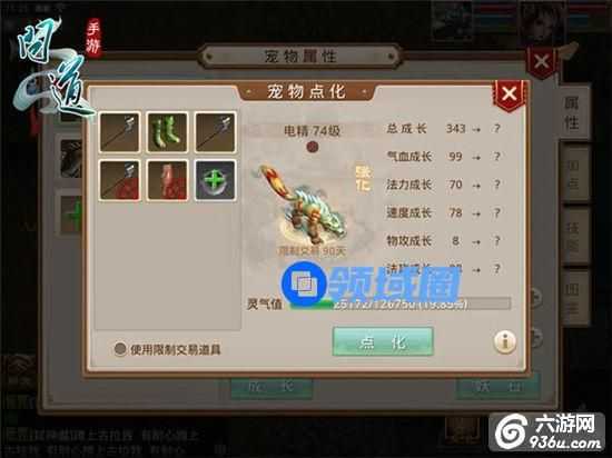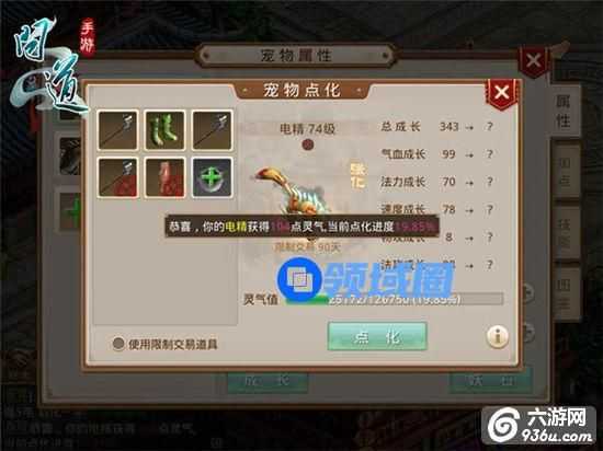 ②宠物点化所需的灵气值随着携带等级的提升而提升。