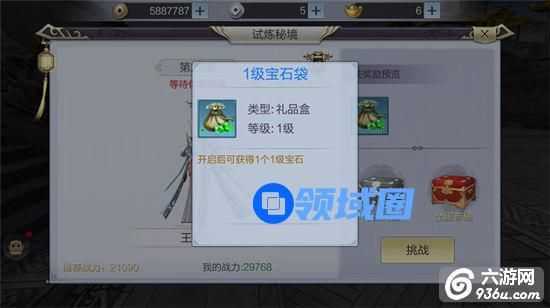在试炼秘境中,每一重都有一个相应的怪物,通关当前层数的秘境就可以获得宝石袋奖励,开启宝石袋随机获取宝石。