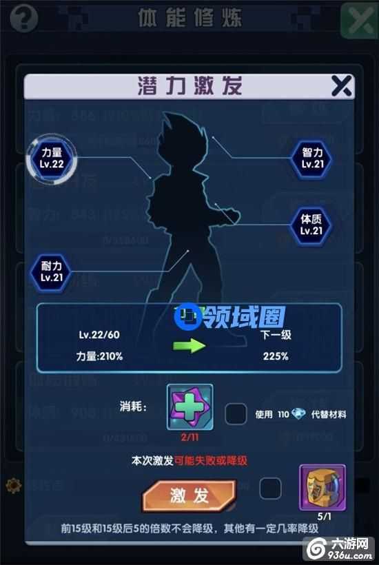 潜力升级成功后的战力增加比起体能修炼而言更可观,但激发到15级以后,就能几率失败(几率很大!!)