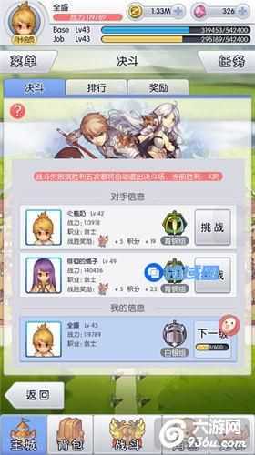 首先进入了决斗场,你们会看到你们决斗玩家的战斗力、等级、分组(青铜、白金、黄金、大师)、职业、战胜奖励。