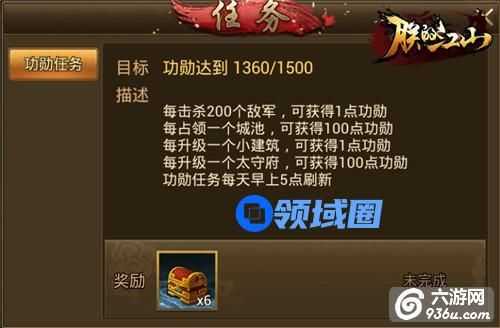 每日进图左上角有功勋任务,打完3000功勋后记得点左上任务领取宝箱,功勋任务每天5点更新,大家记得做任务哦。功勋宝箱在背包里开宝箱随机可得到银两(可在商店买装备),招募令(可用于普通招募),武魂(武将进阶的消耗品)。招募到相同的武将时也可以转化为武魂。