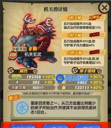因此我们首先要针对其共性下手,高血,高伤害减免。那么意味着我们的输出弟子的培养一定要尽量向攻方向倾斜,最好是能配合以高攻击加成的星宿和技能减免型星宿,在弟子的选择上要选择对克制血量有特殊效果的弟子,如大叔(大R推荐,技能携带),火凤(小R推荐,火凤加成很高且凤语按百分比掉血)之类的弟子,在机关兽的搭配上建议选择青龙(无视减伤)及兵魔神(百分比减血并抑制回血50%),且此二者攻击不会触发反击。