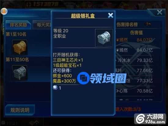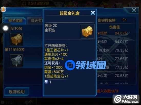 奖励:每周三对伤害排行榜进行发放奖励。