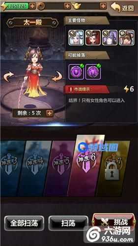 太一殿副本的进入要求还是比较有意思的,因为太一殿有着强大的结界,所以只有女性角色可以进入,那么在攻打太一殿的时候,阵容的选择就有了很大的限制,你 也就会为自己仅有的几个女性角色而发愁。但就算是进入5个女性角色,其实这太一殿也并没有什么难度,只要你能把握住几个要点就可以了。
