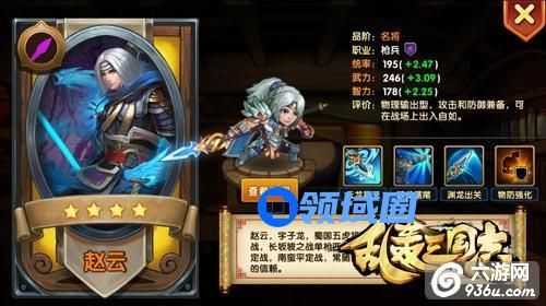 赵云在《乱轰三国志》中属于攻击防御兼备的选手,其技能“云龙翔天”、“游龙摆尾”、“渊龙出关”满满的超高DPS输出,是下副本、打野怪的得力干将,绝对值得各位玩家培养。