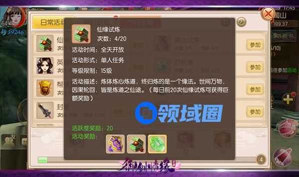 《御剑情缘》手游 仙缘试炼有什么奖励玩法介绍