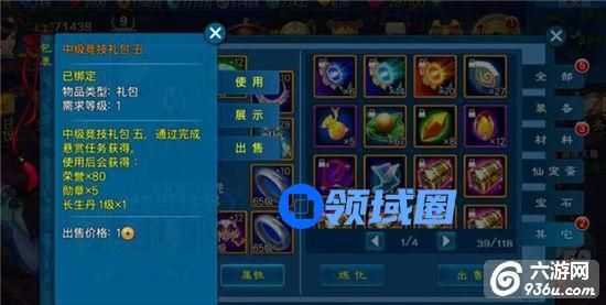 中级竞技礼包五:荣誉80,勋章5,长生丹1级1。