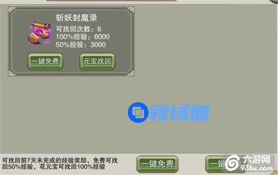 3、经验找回界面中,可以找回7日内未参加的副本的经验。