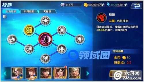 格斗家升级后可以获得相应的技能点,消耗技能点可以提升技能等级,不同等级的技能,升级时需要的技能点数也不想同