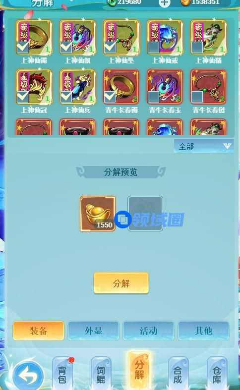 分解:过期活动的道具和部分装备道具可通过分解获得相应的素材。
