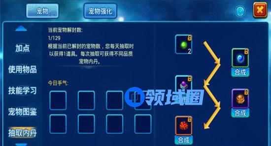 5、【宠物内丹】可在【商城-宠物】购买获得,也可通过【宠物图鉴】抽取锦囊获得。