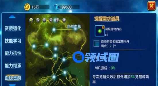 注:觉醒时有一定概率失败;觉醒成功率与当前转数/血脉种类有关,转数越高、血脉种类越高贵,成功概率越低;觉醒失败每次将累计提升成功率5%,直至觉醒成功。