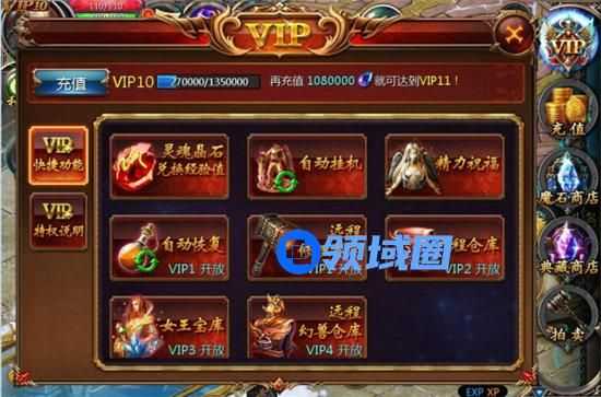VIP等级达到3级的神选者可以通过点击“商城”—“VIP”—“女王宝库”进入女王宝库的神秘世界。