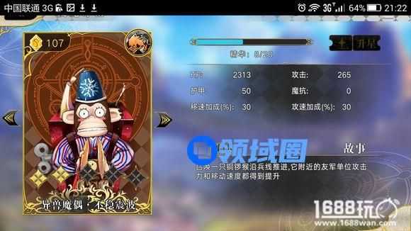概述:召唤一只铜锣猴沿兵线推进,它附近的友军单位攻击速度和移动速度都得到提升。