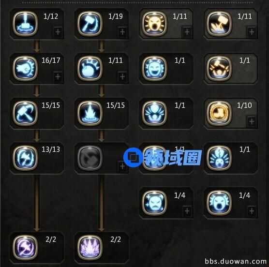关于技巧,旋转冲击必须+1,这个就不解释了,狂战的主力输出技能,范围炸弹可出技巧可不出,看玩家的喜好了。